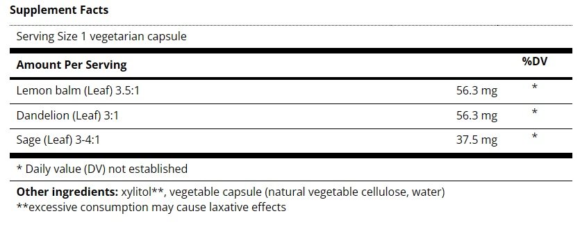 Lemon balm known for its relaxing, calming and antispasmodic properties. It helps to ease nervous tension and irritability in the intestinal smooth muscles and optimizes the transit time of food through the gut.
